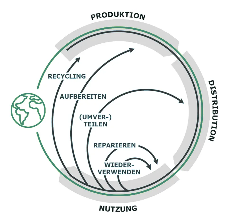 Ein zentraler Schritt auf dem Weg hin zu mehr Nachhaltigkeit in Unternehmen ist die Umstellung auf das Prinzip der Kreislaufwirtschaft. In der bisherigen „Wegwerfwirtschaft“ werden Produkte produziert und nach ihrer Nutzungsdauer zu einem großen Teil weggeworfen, das heißt, sie werden nicht einer Wiederverwendung zugeführt und Abfälle werden verbrannt oder deponiert.